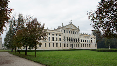 La villa Pisani nous accueille tout d'abord, palais plus que villa, bâtie en 1750 pour la gloire du nouveau doge, déception la splendide façade sur le canal est en travaux, l'intérieur peu meublé et sombre a un petit air désolé qui sied à la journée, on oubliera les commentaires de la guide sur Napoléon l'envahisseur qui acheta cette villa et la donna à Eugène de Beauharnais pour s'émerveiller du jardin rythmé par statues et fabriques, un hymne à la beauté classique.